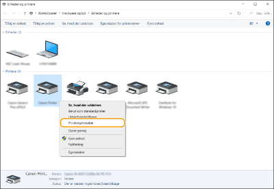 Hvis du printer med denne metode, er det kun et begrænset antal printindstillinger, der er tilgængelige.