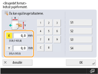 Hvis du registrerer papirformatet, du anvender, på knapperne <S1> til <S4>, kan du hente dem med en enkelt tryk. Registrering af papir med frit format (Papir med brugerdefineret format)