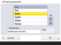 Du kan ændre det sprog, der vises på touchpanelet og tastaturet.