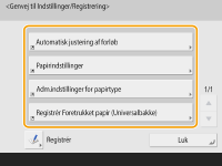 For nemmere brug af <Hjem>-skærmen og skærmen Grundlæggende funktioner for hver funktion kan du tilpasse skærmen ved at omarrangere knapper eller oprette genvejsknapper. Derudover kan du arbejde mere effektivt ved at registrere de indstillinger, der allerede er angivet for ofte bruge funktioner, til <Personlig>/<Delt> eller til Personlige indstillinger for at tilpasse betjeningsmiljøet efter dine præferencer.