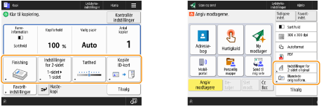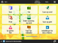 Du kan ændre de indstillingsknapper, der vises på skærmbillederne Grundlæggende funktioner (til kopiering, faxning og scanning). Du kan også vise et andet skærmbillede for grundlæggende funktioner, der er tilpasset hver enkelt bruger, der er logget på.