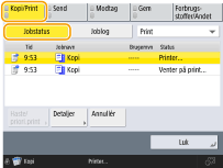Tryk på <Kopi/Print>  <Jobstatus>.