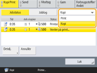 Vælg <Kopi> på dropdown-listen, og vis ventende kopijobs.