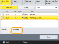 Vælg det kopijob, der skal annulleres, og tryk på <Annullér>.
