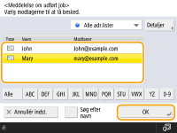 Vælg en e-mailadresse fra adressebogen, og tryk på <OK>.