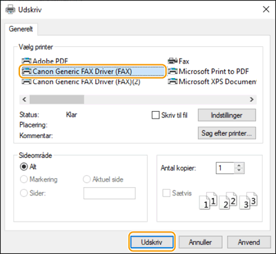 Afsendelse af pc-faxer