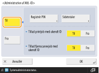 Hvis du logger på som en bruger med administratorrettigheder, tildeles der automatisk et Systemadministrator-ID og en Systemadministrator-PIN-kode, og administreres som afdelings-id.