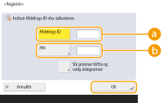 Indtast afdelings-ID'et og PIN-koden, og tryk på <OK>.