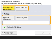 For at vælge modtageren at underrette fra <Adressebog> er det nødvendigt at registrere modtageren på forhånd. Registrering af modtagere i adressebogen