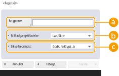 Vælg MIB-adgangsrettigheder fra <Læs/Skriv> eller <Skrivebeskyttet>.