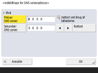 Tryk på <Præferencer>  <Netværk>  <Indstillinger for sublinje>  <Indstillinger for systemdatakommunikation>  <Indst. for DNS-serveradresse>.