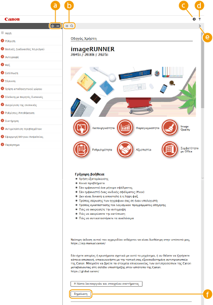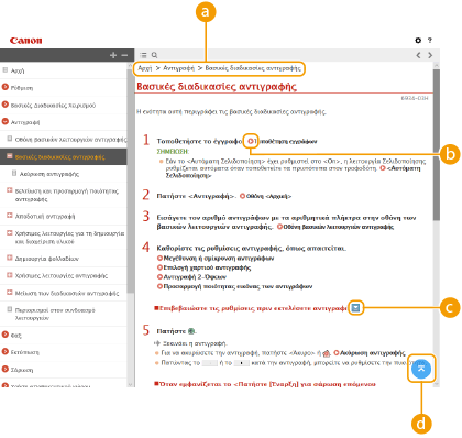 Κάντε κλικ για να εμφανιστούν πληροφορίες σχετικά με το πώς μπορείτε να προβάλλετε το εγχειρίδιο Οδηγός Χρήστη, να πραγματοποιείτε αναζήτηση και άλλες πληροφορίες.