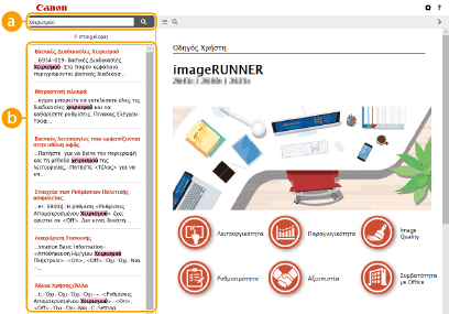 Πατήστε για εναλλαγή ανάμεσα στον πίνακα περιεχομένων και την οθόνη αναζήτησης. Όταν εμφανίζεται ο πίνακας περιεχομένων, με κάθε κλικ στο  η οθόνη αποκρύπτεται και εμφανίζεται εναλλάξ. Όταν εμφανίζεται η οθόνη αναζήτησης, με κάθε κλικ στο  η οθόνη αποκρύπτεται και εμφανίζεται εναλλάξ.