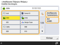 Εάν θέλετε να επεξεργαστείτε τις ρυθμίσεις ενός πλήκτρου μνήμης, πατήστε <Αποθήκευση/Τροποποίηση>. Για λεπτομέρειες σχετικά με την επεξεργασία των ρυθμίσεων, δείτε το βήμα 7 στην ενότητα Καταχώριση προορισμών στο Βιβλίο διευθύνσεων. Πατήστε <OK> μετά την ολοκλήρωση της επεξεργασίας.