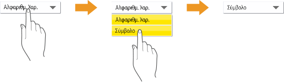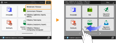 Σε ορισμένες οθόνες, μπορείτε να αλλάξετε σελίδα ή να πραγματοποιήσετε κύλιση μετακινώντας το δάχτυλό σας προς τα επάνω/κάτω ή προς τα αριστερά/δεξιά στην οθόνη όπως θα κάνατε με ένα smartphone.