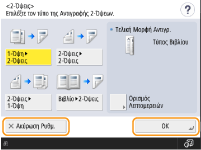 Πατήστε <OK> για την εφαρμογή ρυθμίσεων και <Ακύρωση Ρυθμ.> για διαγραφή των αλλαγών και επαναφορά των προηγούμενων ρυθμίσεων.