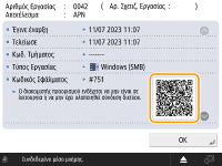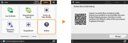 Εάν πατήσετε την επιλογή <Βοήθεια>, εμφανίζεται ένας κωδικός QR. Εάν σαρώσετε αυτόν τον κωδικό QR με μια φορητή συσκευή, όπως ένα smartphone ή ένα tablet, μπορείτε να αποκτήσετε πρόσβαση στη σελίδα του Οδηγός Χρήστη για αυτήν τη συσκευή.