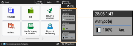 Όταν το <Απαγόρευση Επαναποστολής από Ημ/γιο> έχει ρυθμιστεί στο <On>, το ιστορικού του «Φαξ» και του «Σάρωση & Αποστολή» δεν διατηρείται στη λωρίδα χρόνου.