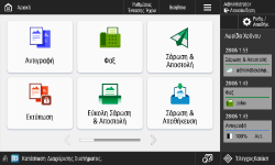 (Αρχική σελίδα). Η οθόνη <Αρχική> εμφανίζει μια λίστα με τα πλήκτρα λειτουργιών και αποτελεί είσοδο σε διάφορες λειτουργίες. Στοιχεία που εμφανίζονται στην οθόνη <Αρχική>