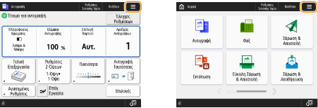 που εμφανίζεται στην <Αρχική> οθόνη και στην οθόνη βασικών λειτουργιών για να πραγματοποιήσετε αλλαγές στην οθόνη, όπως αναδιάταξη των πλήκτρων ή δημιουργία πλήκτρου συντόμευσης. Προσαρμογή της Οθόνης Αφής