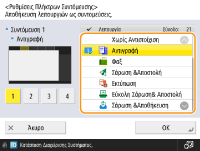 Μπορείτε να δημιουργήσετε ένα πλήκτρο συντόμευσης λειτουργιών στην οθόνη <Αρχική>. Χρησιμοποιήστε αυτό το πλήκτρο για να αποκτήσετε πρόσβαση σε μια διαφορετική λειτουργία χωρίς να επιστρέψετε στην οθόνη <Αρχική>. Για να δημιουργήσετε μια συντόμευση, συνδεθείτε με δικαιώματα διαχειριστή. Σύνδεση στη συσκευή