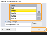 Πατήστε <Αλλαγή Γλώσσας/Πληκτρολογίου>, επιλέξτε μια γλώσσα από τη λίστα και πατήστε <OK>.