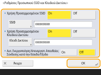 Πατήστε <Ρυθμίσεις Προσωπικού SSID και Κλειδιού Δικτύου>, καθορίστε ένα προσωπικό SSID και κλειδί δικτύου και πατήστε <OK>.