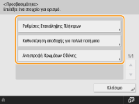Πατήστε <Προσβασιμότητα> και επιλέξτε τη ρύθμιση που θέλετε να διαμορφώσετε.