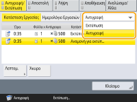 Επιλέξτε <Αντιγραφή> από την αναδιπλούμενη λίστα και εμφανίστε τις εργασίες αντιγραφής σε αναμονή.