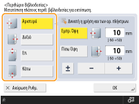 Μπορείτε να δημιουργήσετε περιθώρια βιβλιοδεσίας για συρραφή ή κάλυψη διάτρησης. Μπορείτε να εισαγάγετε περιθώρια βιβλιοδεσίας στην μπροστινή και πίσω όψη των σελίδων ξεχωριστά.