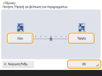 Ρυθμίστε την ευκρίνεια στο <Υψηλή Τιμή> όταν θέλετε να αντιγράψετε πρωτότυπα που περιέχουν κείμενο ή λεπτές γραμμές. Ρυθμίστε την ευκρίνεια στο <Χαμηλή Τιμή> όταν θέλετε να αντιγράψετε πρωτότυπα που περιέχουν εκτυπωμένες φωτογραφίες ή ράστερ.