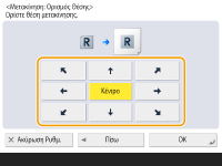 Πατήστε <Ρύθμιση> στο <Εμπρός Όψη> και καθορίστε τη θέση μετακίνησης. Πατήστε τα πλήκτρα πάνω/κάτω/αριστερά/δεξιά για να ορίσετε κατεύθυνση και εισαγάγετε την απόσταση μετακίνησης με τα αριθμητικά πλήκτρα.