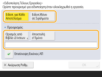 Για να επιλέξετε τον προορισμό ειδοποίησης από το <Βιβλίο Δ/νσεων>, πρέπει να καταχωρίσετε τον προορισμό εκ των προτέρων. Καταχώριση προορισμών στο Βιβλίο διευθύνσεων