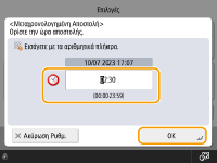 Πληκτρολογήστε την ώρα αποστολής και πατήστε <OK>.