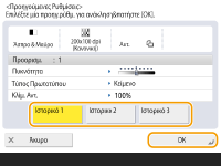 Μπορείτε να αποθηκεύσετε ένα σύνολο ρυθμίσεων προορισμού, σάρωσης ή αποστολής, πριν πατήστε το (Έναρξη) ως μια ομάδα προηγούμενων ρυθμίσεων.