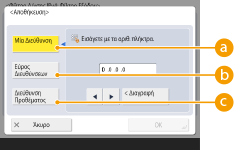 Καθορίστε μια περιοχή διευθύνσεων IP. Εισαγάγετε ξεχωριστή διεύθυνση στο πεδίο <Πρώτη Διεύθυνση> και στο πεδίο <Τελευταία Διεύθυνση>.