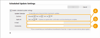 Επιλέξτε το πλαίσιο ελέγχου για [Enable scheduled update settings] και διαμορφώστε τις απαραίτητες ρυθμίσεις.
