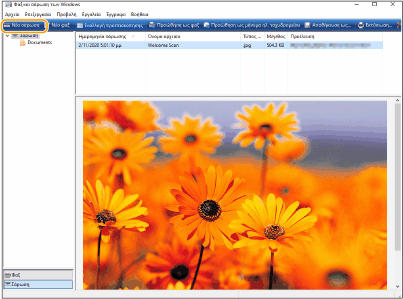 Όταν ολοκληρωθεί η σάρωση, το σαρωμένο έγγραφο εμφανίζεται στη λίστα με τα αρχεία στην οθόνη [Φαξ και σάρωση των Windows] και αποθηκεύεται στον φάκελο [Σαρωμένα έγγραφα] μέσα στον φάκελο [Έγγραφα].