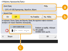 <Ρυθμίσεις Ημερομηνίας/Ώρας>.