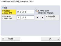 Πατήστε <Προτιμήσεις>  <Δίκτυο>  <Ρυθμίσεις Δευτερεύουσας Γραμμής>  <Ρυθμίσεις για Επικοινωνία Δεδομένων Συστήματος>  <Ρυθμίσεις Διεύθυνσης Διακομιστή DNS>.