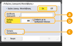 Πατήστε <On> για <Χρήση Διακομ. Μεσολάβησης>  Διαμορφώστε τις ρυθμίσεις που απαιτούνται πατήστε <OK>.