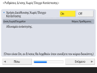 Πατήστε <On> για χρήση της διεύθυνσης χωρίς έλεγχο κατάστασης ή <Off> για μη χρήση της διεύθυνσης χωρίς έλεγχο κατάστασης και, στη συνέχεια, πατήστε <Επόμενο>.