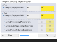 Για αυτόματη ενημέρωση με τις ρυθμίσεις δυναμικής ενημέρωσης DNS, πατήστε <On> στο <Δυναμική Ενημέρωση DNS> και, στη συνέχεια, πατήστε <OK>.
