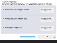 Πατήστε <Έναρξη Εκτύπωσης> για να εκτυπώσετε την αναφορά που επιθυμείτε.