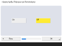 Για χρήση της πιστοποίησης μέσω καταχώρισης με αριθμητικά πλήκτρα μόνο στην οθόνη σύνδεσης, πατήστε <On> και, στη συνέχεια, πατήστε <OK>.