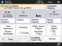 Εμφανίζει τα πλήκτρα που χρησιμοποιούνται συχνότερα. Η κατάσταση ρυθμίσεων εμφανίζεται στα πλήκτρα. Για να αλλάξετε τις ρυθμίσεις, πατήστε το επιθυμητό πλήκτρο.