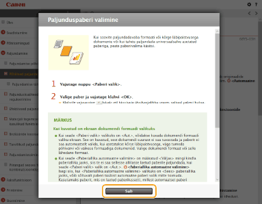 Klõpsake, et kuvada printeri kasutamist käsitlev oluline teave.