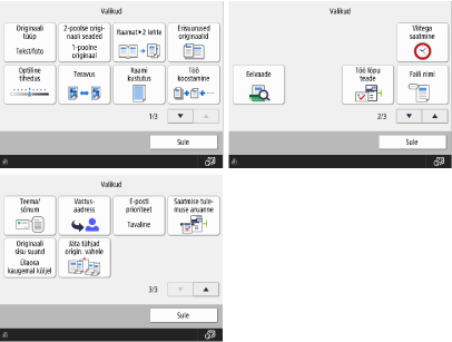 Skaneerimise ja saatmise põhiomaduste ekraan
