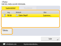 (Stopp) ja ekraanil on kuva <Faks>/<Skaneeri ja saada>, ilmub hüpikaken, mis tühistab otse poolelioleva töö. Kui pooleli on mitu tööd, saate valida millise neist tühistate – kas viimase töö või selle, mis on parasjagu saatmisel. (<Nupu Stopp vajutamisel tühistatav töö>)Kui mõnda tööd alustati pärast juhtpaneeli nupu