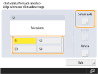 Tehke valik vahemikus <S1> kuni <S4> ja vajutage nuppu <Salvesta/muuda>.